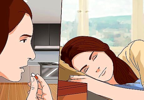Take valerian root right before bed. As it is a sedative, it is best to take it in the evening, so it doesn't affect your day too much, especially if you need to drive early in the day. Taking it 30 minutes to two hours before bed is good as it gives the root time to work as a sleep aid, as well as decreasing anxiety.