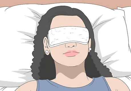 Shield your eyes with protective eyewear when using a tanning bed. If you regularly go tanning, wearing eye protection is essential to prevent eye sunburn. Use the protective eyewear provided by the salon, or bring your own. Make sure that the eyewear blocks at least 99% of UVA and UVB rays.