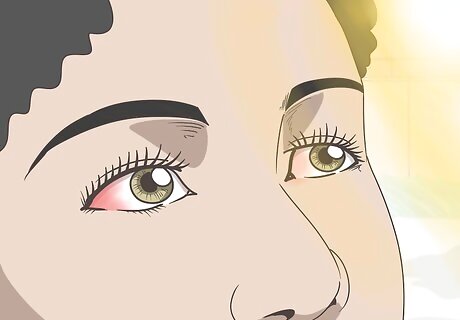 Remove your contact lenses if you wear them. This will help reduce irritation and increase your comfort when you have an eye sunburn. Place your contact lenses in their usual case and clean them as you normally would after you remove them. Wear glasses instead of contacts while you’re waiting for your eyes to recover. Don’t wear your contacts again until your eye sunburn has fully healed.