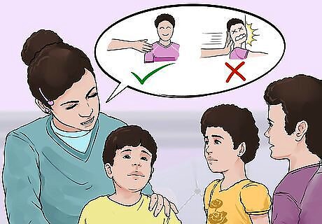 Set limits on how physical the games can get. Explain the importance of safety to your children. Even though they are playing, they need to tone down their physicality when inside. Roughhousing could result in breaking something, or worse yet, hurting one of the kids. You can say something like, "Okay, this mini football game is touch only! Do NOT push down your brothers or sisters, okay?"