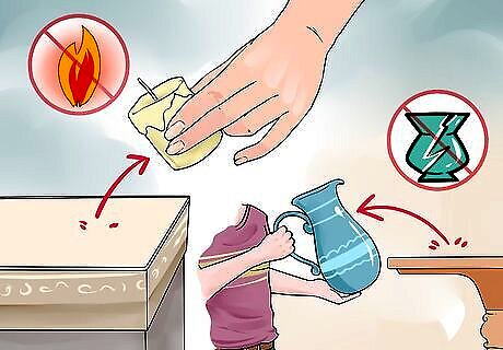 Remove any dangerous or sharp obstacles that may harm the kids. Sharp corners, edges, utensils, or tools should be eliminated from the rooms involving indoor play. Remove objects that can break or shatter from shelves, and be careful to choose a room that doesn't have windows or mirrors that could break. Lit candles or open flames should be put out before the kids start playing.