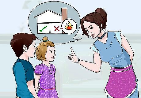 Teach the children what they should do in case of an emergency. Create a plan that your children can follow in case they get into an emergency when playing indoors. This could include a cell-phone number that you provide or the protocol on what to do if something, such as someone getting hurt. If you aren't going to be home, make sure to leave them a list of emergency numbers in case something goes wrong. Communicate with the kids via text if you aren't going to be home. It may be easier to do this unless there is an emergency. If you aren't going to be home, make sure that there is a neighbor that can help your kids in emergency situations.