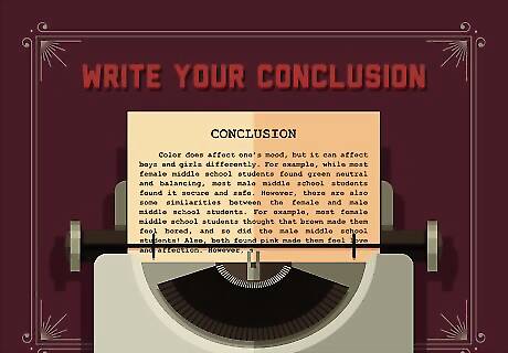 Write your conclusion. Your conclusion paragraph like all the other paragraphs starts on the next line and is indented. Your conclusion is a summary, much like your introductory paragraph, which briefly touches on the question or problem with which you based the paper on. Include your methods or arguments for answering the question, or solving the problem, and restate your thesis. In your conclusion, make sure you restate your topic and explain its importance. Restate your thesis. You don’t want to simply write out your thesis. Instead, it should be a re-wording so that it compliments the information you have provided throughout the body of your paper. Then summarize your main points. Quickly explain the points that served as your larger arguments from each paragraph and tie this information back into your thesis. Explain how these points supported your thesis. Like your introduction, your conclusion doesn’t always have to be as long as your body paragraphs. However, it can be longer than your introduction. You might go into more depth on expressing how your main points contributed to your thesis.