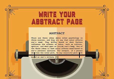 Write your Abstract page. If you are writing in the APA format, you’ll need an Abstract page which is a concise summary of your research and findings. At the top of your page center your cursor and write “Abstract”. On the next line you will write your summary which includes all the relevant information to your paper. This is like a preview to your research paper and includes sources, persons interviewed, stats, and your findings. Do not indent your first line and keep your Abstract between 150 and 250 words.