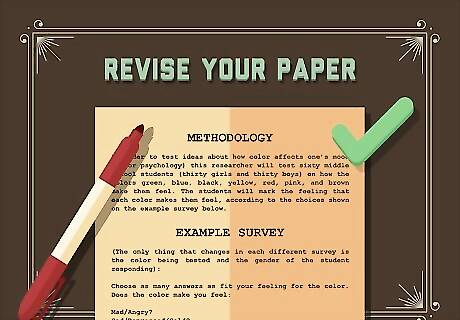 Revise your paper. After you finish your first draft, take a break. After some time away, go back and read over your paper checking for any content errors, facts, sources, and quality. Then revise your paper into your final draft. Your research paper won’t be complete after one draft. You will usually have some errors and may have not fully answered your thesis or provided enough relevant information. Some research papers even take three or four drafts before being complete. Go through a checklist and make sure that you have included not only the right information but done so in a way that your reader can follow. Ask yourself: Is my thesis clear and concise? Does it answer the question posed? Did I follow my outline? Am I missing anything from it? Have I proved my thesis throughout my paper clearly and with strong supporting arguments. Have I given enough documented support to my arguments. Once you can check off each item in this list, go through and check your paper for spelling and grammar. Make sure that your paper follows your formatting as well.