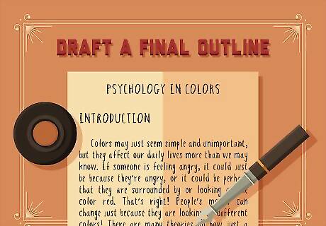 Draft a final outline. With everything in place and more knowledge on the central idea of your research paper, look over the structure of your outline. You may find that you would be better off rearranging some of the body paragraphs. Perhaps you found a better or new supporting source or statistic to back up an argument. Edit your outline to include this new source. You may also find that you have irrelevant information in your outline which now distracts from your main idea. If this is the case, take it out.