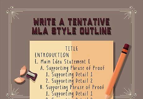 Write a tentative MLA Style outline. Writing an outline will not only help the actual writing of your paper but will help you to stay on topic. An outline makes a difference in how your paper is structured and interpreted by the reader. Unless otherwise instructed, following the standard MLA format is a great way to structure your outline. MLA (Modern Language Association) is a commonly used format for structuring your papers in your word processor. It dictates your margins, spacing, font type, etc. At the top center is the title of your paper. Below, on a left indent, is your introduction. This is roughly a three to five sentence paragraph which gives basic information on what your topic is and what’s included in this paper. The end of your introductory paragraph typically contains your thesis. Each paragraph is denoted by a Roman numeral in your outline. On your first line, start with a complete sentence that expresses the main idea which supports your thesis. Your next line is denoted by a capital letter, starting with “A” for each section. Here you write a phrase that represents what you offer as proof from your research to support this main idea. On the next lines below your capital letters are supporting points denoted by numbers, starting at “1”. Next to your number you will write a phrase that contains a specific example of support, detail, or statistic to back up your previous statement. Here’s an example of a potential beginning to an outline if you’re writing about Eisenhower’s contribution to America’s success in Europe during WWII: I. “Dwight D. Eisenhower’s superior tactical abilities aided in the successful invasion of Normandy, France on D-Day, ultimately shifting the tide of the war in the Allies’ favor.” A. Here you might have a sentence that discusses the outcome of D-Day. 1. Support your statement about the outcome of D-Day by providing statistics and details that prove this invasion was a success. Continue your outline in this format for your other paragraphs. In many cases, you will have three body paragraphs that support your thesis if writing in MLA.