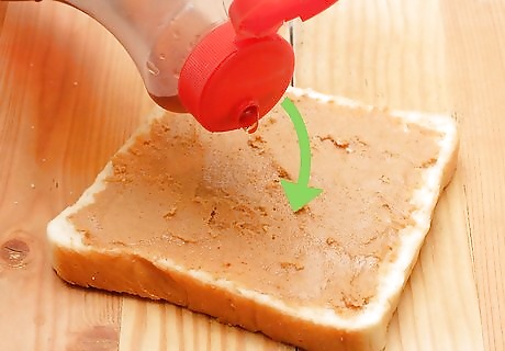 Drizzle extra flavor. You can use peanut butter and jelly as the basic fillings (or just use the peanut butter for a less sweet sandwich) and drizzle a syrup over them. For a robust flavor, drizzle a little molasses over the peanut butter. For a milder flavor, drizzle some honey, golden syrup, or agave syrup over the fillings. If you want to cut some of the sweetness of your fillings, whip up a little cream cheese and spread it over the peanut butter or jelly.