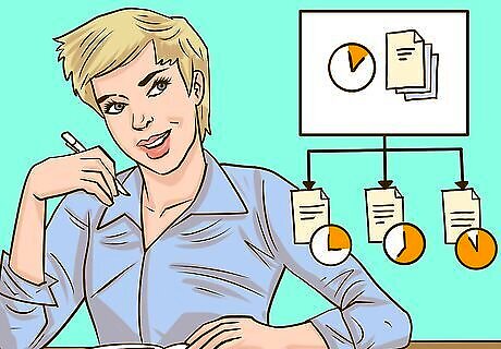 Break large projects into smaller tasks with individual deadlines. If you're one of those people who procrastinates to the last minute on big projects, use your planner to help you overcome that personality quirk. When you break a project into smaller tasks, it becomes more manageable, and you won't be waiting to the last minute to finish it. For instance, maybe you want to clean the whole house before your relatives show up for a certain holiday. For 1 week, make your goal decluttering the house, and set a different room to do each day. For the next week, aim to put clean sheets on the guest bed and air out the room. Breaking the project into smaller tasks makes it easier for your brain to complete each small step.