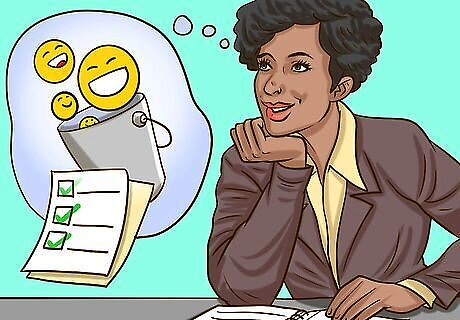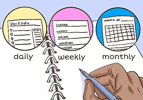 Look at the big picture at least once a month. It's easy to get bogged down in the day-to-day details. To be more successful, though, you can challenge yourself to accomplish larger goals. Take time each month to think about what larger things you'd like to do for yourself. That way, you can schedule smaller tasks to start working towards those goals. For instance, maybe you'd like to learn how to paint. Write that down in the monthly section. Then, add time to your weekly schedule to research classes and register for one you can take. If you forget to take time to look at the bigger picture, add it to your planner once a month!