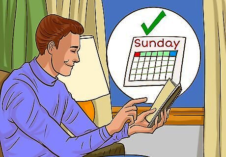 Look at your upcoming week each Sunday night. Review what's ahead for the week, and make sure everything is on your schedule that needs to be. Go through the week in your mind so you can see what needs to be done each day. If your week doesn't start on Monday, pick the day before it starts for you.