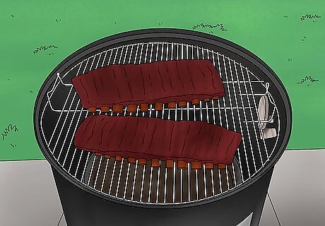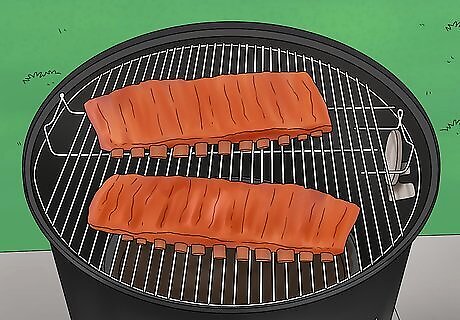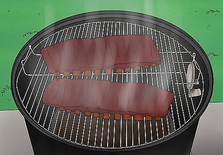 Take the food off the grates once it’s finished. Use a meat thermometer to check any meat to make sure it’s fully cooked. The amount of time you should let the food smoke depends on what you’re smoking and how big it is. Some basic smoking times for foods being cooked at 225-250°F (107-121°C) are: Spare ribs: six to seven hours. Brisket: one and a half hours per pound. Whole chicken: four hours. Whole turkey: six and a half hours.