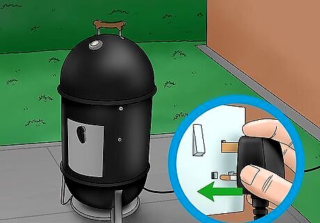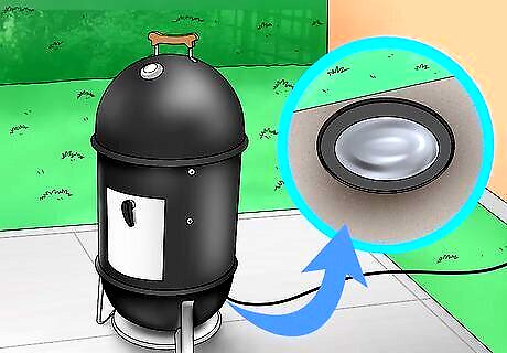 Plug the electric water smoker into an outlet outside. There should be a cord attached to the side of the smoker. Position the smoker on a flat surface where it’s away from any surrounding objects. Don’t have the smoker directly touching anything.