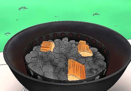 Fill the tray right above the burner with wood. Use wood chips, sawdust, or actual chunks of wood. Don’t overfill the tray so that wood pieces are falling out of the pan; you want the wood to come up to just below the rim of the tray.