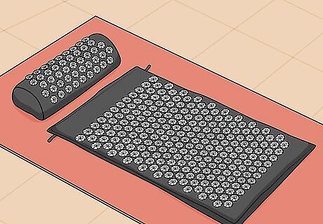 Arrange your acupressure mat on the yoga mat. Unroll your acupressure mat, making sure the plastic spikes are facing up. If your mat comes with a special neck rest, place that pillow at the top. Chances are, your acupuncture mat isn’t super long. That’s totally normal! Acupuncture mats are designed to treat and stimulate specific parts of your body.