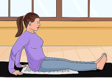 Improve your posture by sitting upright on the mat. Keep your legs and back straight, centering your bottom on the plastic spikes. Arch your arms backward and place them on the yoga mat if you’d like to give yourself some extra support. Sitting straight on your mat helps encourage good posture.