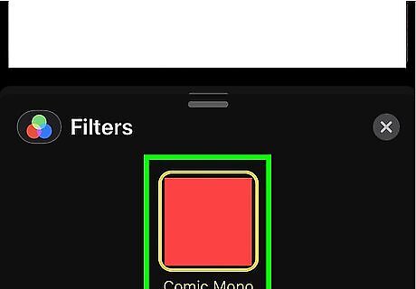 Tap the Filters icon. It’s the three circles (pink, green, and blue) at the bottom of the screen. You’ll see a preview of each filter at the bottom of the screen.