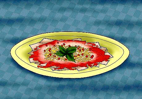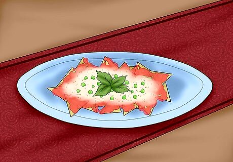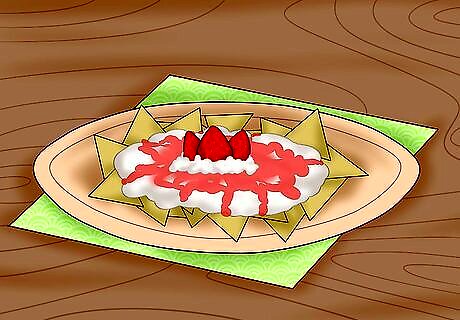 Create a chocolate lasagna. While you’ve probably made many lasagnas, you have probably never made a chocolate lasagna. By making a chocolate lasagna, you’ll put an interesting and tasty spin on a dish your family is already familiar with. Start by preheating your oven to 350 degrees (177 degrees Celsius). Then: Boil 8 ounces of noodles for 1 minute, strain them, and place them in a bowl of ice water. After they’ve cooled, strain them again and allow them to dry. Mix 2 pounds of ricotta (.9 kg), 1 cup of sugar, ½ cup of unsweetened cocoa, and 2 eggs together. Add 1 or 2 cups of chocolate chips and 4 ounces of grated white chocolate. Spread ¼ of the ricotta onto the bottom of an 8 inch by 8 inch (20 centimeters) baking dish. Sprinkle your choice of nuts or other topping and then cap the layer with lasagna noodles. Repeat the previous process until you have four layers of ricotta. Do not top the final layer with lasagna noodles. Bake for about 35 minutes.