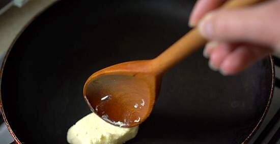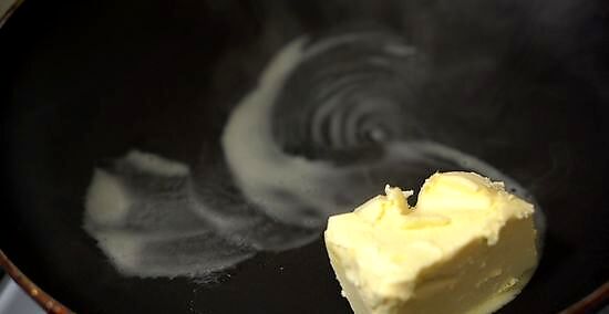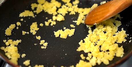 Melt 5 tbsp (75.6 g) of butter in the skillet. Drop a few spoonfuls of butter into the warm skillet. Rotate the pan slightly, allowing the butter to melt and spread over the metal surface. You can also use a wooden spoon or whisk to get the job done!
