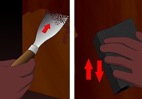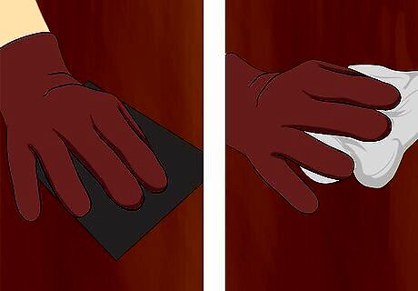 Wipe down the surfaces with mineral spirits. Take a cloth dampened with mineral spirits and wipe down the surfaces. Wipe dry and allow about 10 minutes for any remaining mineral spirits film on the surfaces to evaporate.