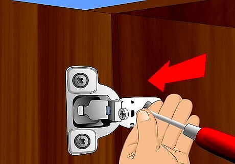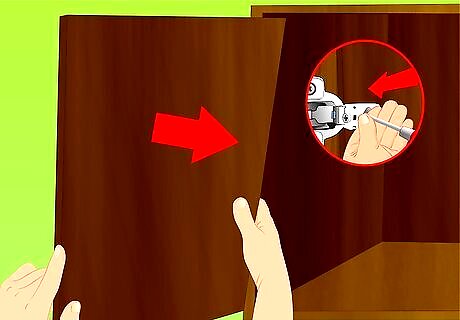 Remove the doors from their hinges. If the cabinets are already installed, remove the cabinet doors by removing the hinges with a screwdriver. Set the doors aside. Since this is a wipe-on finish, it is easier to control its application. You may leave the doors on if you choose, but it’s much easier to work with them removed.