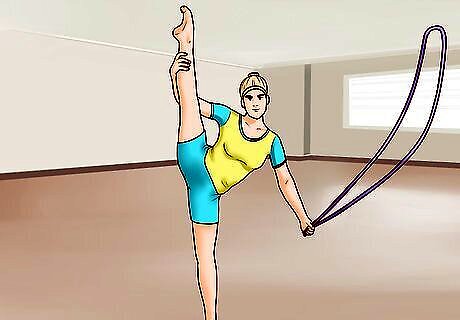 Combine other movements with the swinging of the rope. Do balances such as the Y-scale or needle while swinging it, or front and back body waves. Swing the rope as you run into a leap, or do ballet movements. Or use it as a preparation for a more complicated move or rope trick.