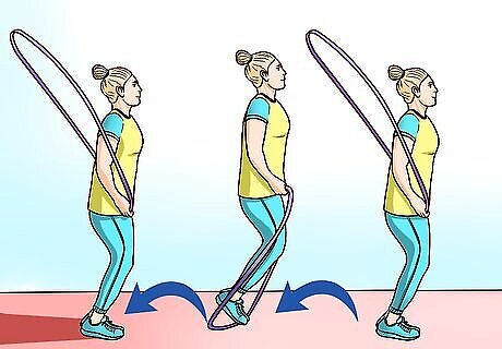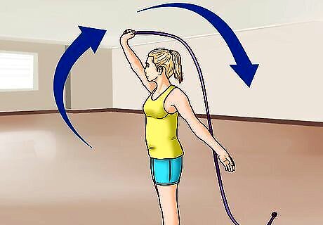 Know how to do the basic single under. In rhythmic gymnastics, you must jump only once as the rope swings a full circle. Some beginners tend to jump twice in only one circle, which is easier, but this is not as pretty. If you are just getting started with jumping rope, make sure not to do that, as it will be harder to get out of the habit later on. Always point your toes. This is harder than you think because it will require you to jump higher. It will take reminding to do it every time at first, but it will become a habit later on. Straighten your legs. Some beginners tuck in their legs so they do not need to jump as high. This is not allowed in rhythmic gymnastics, however, as it is not pretty.