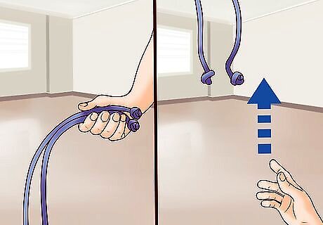 Fold the rope in half, hold the two ends together in one hand, and swing it either clockwise or counterclockwise. Make sure to use your wrist and not the whole arm as this will make the trick more pretty, less tiring, and quicker to do. You can switch back and forth between both hands once you are comfortable.