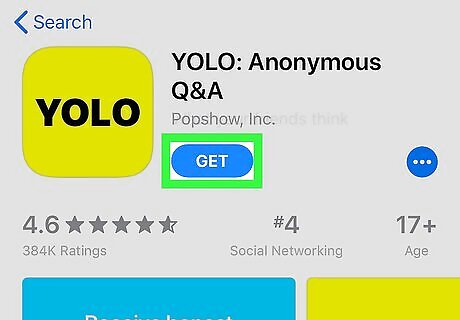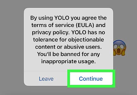 Open Yolo. This app icon is the word "Yolo" in black on a yellow background. You can find this app on your Home screen, in the app drawer, or by searching. With your Snapchat account linked, you can now start asking questions in Snapchat that other people with the Yolo app can reply anonymously to.
