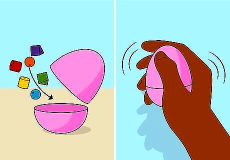 Fill small plastic eggs with tiny toy beads and create a musical instrument. Make some noise with a few small tiny toy beads and a plastic egg. Fill the egg a quarter of the way with the beads, close the egg and shake. You will have an instant maraca.