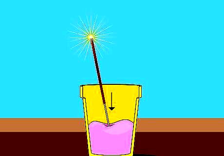 Keep lit sparklers out of reach by planting the stick inside an open can of Play Dough. Whether its sparklers or tapered candles, a quick and easy way to keep them out of reach from small hands is to stuff the stick or candle inside an open can of Play Dough to hold in place.