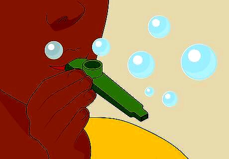 Make bubbles using soapy water and a kazoo. Create your own “at home” bubble maker by dipping a toy kazoo into soapy water. Blow and you’ll have a bubble trail.
