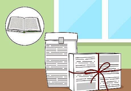 Use old book pages as gift wrap. Wrap small gifts with the double truck pages from an old book or coloring book.