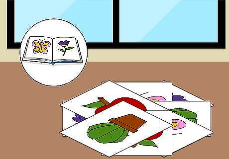 Use old books as placemats. Dig out an old paperback picture book (or even coloring book) to use as a quick option for a placemat. Be sure you are truly finished with the book as using it as a placement means it will most likely be trashed by the end of the meal.