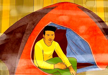 Go camping. There are campsites throughout Japan and if the season is right, this can be a fun, albeit often crowded, way to experience Japan. Be aware that overcrowding is fairly typical during Japanese holiday seasons. You can sometimes rent tents and in some places you'll also be able to rent a cabin or lodge if you've booked in advance. However, the Japanese National Tourist Office does recommend that you take your own gear, "to avoid disappointment". Also note that getting to and from campsites can be problematic if you don't have your own transport.