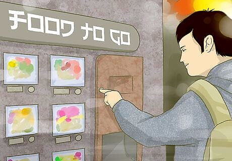 Get pre-made meals at a convenience store. Convenience stores have great tasting, inexpensive pre-made meals. They have everything from prepared ramen to beef bowls. Some convenience stores even have fresh bakeries. Most will have microwaves and chopsticks and/or disposable utensils available. Many have counters where you can eat in the store, if you wish.
