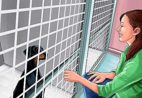Follow all safety rules. Most Humane Society volunteers are required to complete at least a basic training program or orientation in order to learn all of the safe practices in place at the shelter. Safety is of the utmost importance to shelter workers. Follow all safety rules and suggestions. Only approach animals you have been cleared to interact with, as some animals may require special handling.