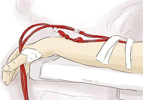 Give blood or volunteer at a blood drive. Blood banks are always in need of more donations, and giving on Thanksgiving can give a patient the chance to spend another holiday season with their loved ones. Ask local hospitals where the closest blood center is to you, or look online to see if a blood drive will be hosted in your area on Thanksgiving. If you can’t give blood, volunteer to become a donor ambassador for the Red Cross. You’ll help run blood drives and make donors comfortable after they’ve donated. To donate, you’ll need to be at least 17 years old and at least 110 pounds (50 kg). Some diseases and medications might also disqualify you for donation.
