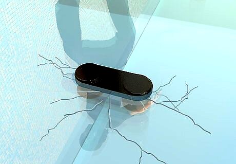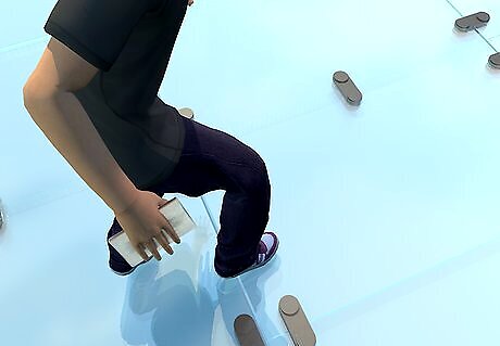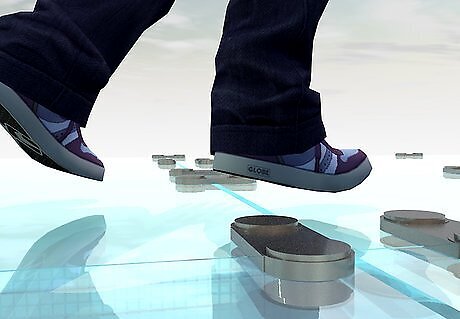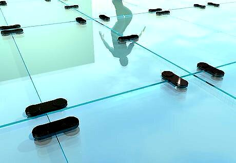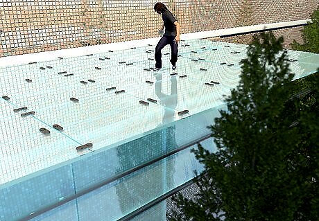 Move evenly and carefully across the glass. Avoid jumping or running on the glass unless you're absolutely certain it is load-bearing glass. Walk with care, take your time, and note where your feet are placed.
