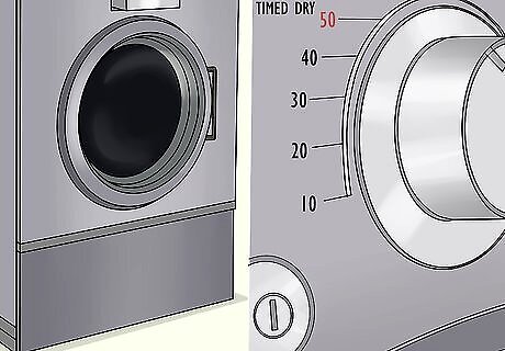 Place the jacket in the dryer for 50 minutes if the care label says to. If you can, place your jacket on its own in the dryer on a low heat setting and leave it for about 1 hour. If it's still wet, put the jacket back into the dryer in 15-minute increments until it dries. Adding heat to the jacket will adhere the waterproofing product to the outside. Do not use dryer sheets or fabric softener.