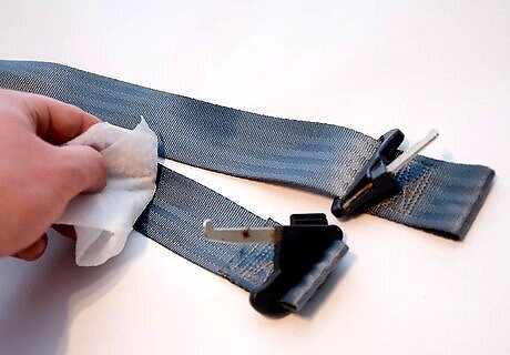 Wipe down harness straps gently with water. Focus on wiping away surface stains, and forget about attempting deep cleaning. Use only a mild soap, like hand soap, if necessary. If the straps are so disgustingly soiled that you can't stand to keep using them, or look worn or damaged in any way, immediately replace them. Contact the seat manufacturer to see if replacement straps are available. This should be able to save you from having to buy a whole new seat.