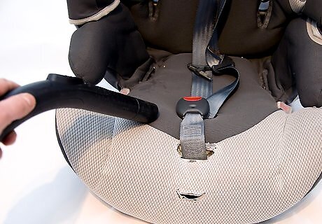 Shake, brush, or vacuum the surface. Brush crumbs and debris off the car seat. Give the seat a shake to remove any hidden crumbs or other debris that has accumulated. If you have a vacuum cleaner with a small attachment, use it to remove any additional debris that may be stuck in partition walls and corners.
