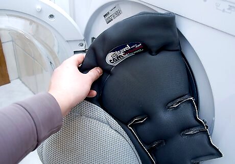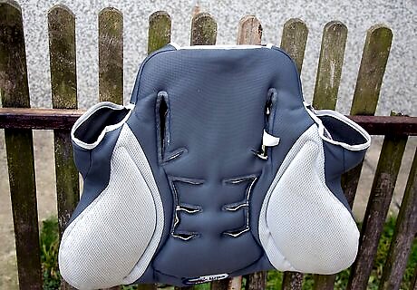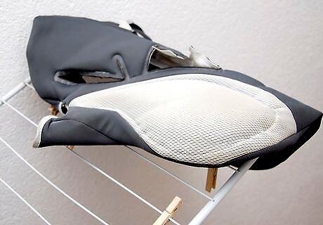 Dry the parts thoroughly. If your cover is removable, either run it through the dryer, if the label permits it, or hang it to air dry. Lay the plastic surface out to air dry. Once you have rinsed the plastic and metal parts of the seat, you can simply leave it sitting someplace to air dry. Wiping it with a dry cloth will expedite the process, but in general, it’s best to allow several hours or a day for it to dry completely. As noted, always only air dry harness straps and buckles.