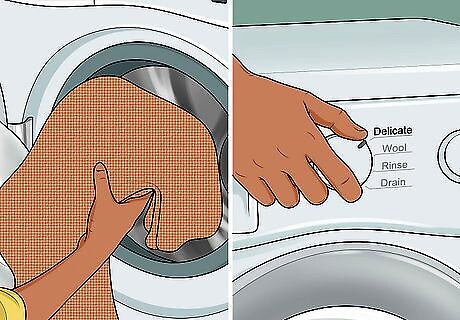 Use the gentle cycle. Put your hemp garments and linens on the gentle or delicate cycle and use a soap that is mild, made of all-natural, and gentle on fabric. Delicate hemp pieces may be placed in a lingerie bag before putting them in the washing machine to help protect them.
