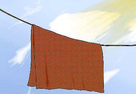 Air or line dry hemp clothing. After washing hemp, it's a good idea to air dry it. If you must heat dry it, avoid using the highest heat setting and remove it before the item has been thoroughly dried. Line-drying in the sun can have a tendency of lightening hemp slightly, which can be a desirable thing in some items, or you might want to maintain the natural color of the hemp. Depending on what you want, you might want to make sure that it stays out of the sun too much.