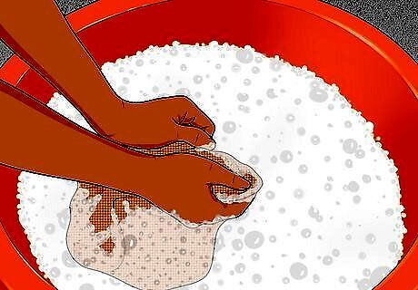 Wash your hemp by hand. Hemp is a durable and long-lasting fabric, but it's most effectively washed by hand. Machine washing and especially drying has a tendency to weaken hemp more quickly, losing the texture and strength that many people love about hemp clothing and other items. If you plan to wash your hemp fabric by hand, use a gentle, all-natural detergent and make sure to rinse thoroughly. Tom's soap works great for washing hemp items. Residual soap can leave cellulose, which oxidizes and leaves large brown spots on hemp, making it very important to soak hemp items in clean water thoroughly for a while after washing them.