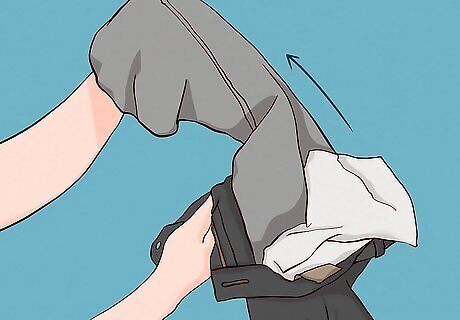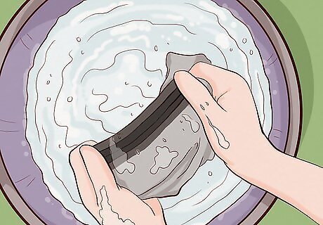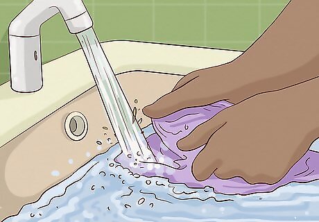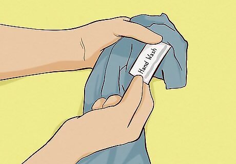 Check the tag and hand wash if necessary. Some work out clothing must be hand washed. If the tag says hand wash only, wash your clothing in your sink or bath tub with some laundry detergent. Rinse the clothing thoroughly after hand washing and then hang it to dry.