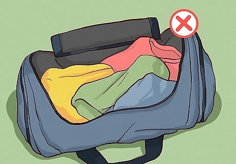 Do not leave workout clothes in your gym bag. The longer you leave your work out clothes sitting in a bag, the worse they will smell. This will make washing them more time consuming. As soon as you get back from the gym, remove your work out clothes and hang them up somewhere in your home. Leaving gym clothes buried can be just as bad as leaving them in a gym bag. Always hang sweaty gym clothes instead of leaving them bunched up on the floor.