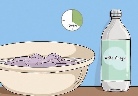 Soak your clothes in white vinegar. Mix one part vinegar with four parts cold water. Soak your clothing in the sink for about 15 to 20 minutes. This will help remove some of the unwanted scent from your clothing. You can also add a splash of white vinegar to the wash for the best results.