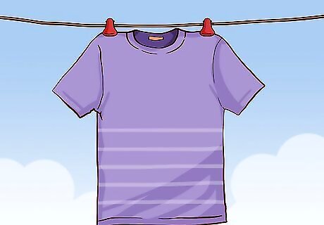 Hang dry your clothes. It's always best to allow work out clothing to air dry. They are less likely to stretch out this way. You should also hang dry your clothing if you don't have time to do laundry after a work out. Sweaty clothing should be hung up somewhere in your home. If you don't already have one, invest in a clothing rack. This is important if work out frequently, as you'll need somewhere to hang dry your clothes.